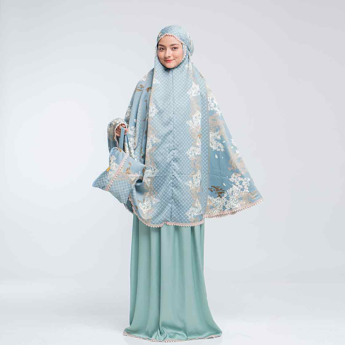 Mukena Premium dengan material kain Armani silk yang Mewah, Lembut, dingin, bahan ringan, mudah dilipat, Tdk mudah kusut sehingga cocok untuk Mukena Traveling, Ibadah Harian dan Idul Fitri.